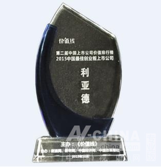 利亞德獲評“第二屆中國上市公司價值排行榜”2015中國最佳創(chuàng)業(yè)板上市公司