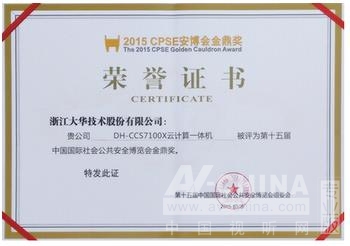 金秋十月,2015年第15屆中國(guó)國(guó)際社會(huì)公共安全博覽會(huì)最高獎(jiǎng)項(xiàng)——金鼎獎(jiǎng)?lì)C獎(jiǎng)盛典在深圳深航國(guó)際酒店圓滿落幕。大華股份新推出的云計(jì)算一體機(jī)(DH-CCS7100X),以高性能的產(chǎn)品及創(chuàng)新技術(shù)的絕對(duì)優(yōu)勢(shì),蟬聯(lián)本屆安博會(huì)“金鼎獎(jiǎng)”榮譽(yù)稱號(hào)。與此同時(shí),大華憑借對(duì)智慧城市解決之道的深刻理解和卓越貢獻(xiàn),榮獲“2015年第四屆中國(guó)智慧城市推薦品牌”稱號(hào)。