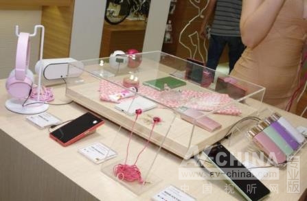 右方外側則是以主題的形式呈現不同色系的 Sony 產品,其中還有一個柜臺是以"粉紅"為主題,將 Sony 所有粉色系產品化為女孩兒的夢幻區(qū)域.