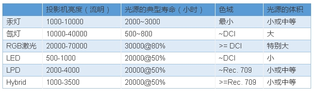 2. 不同的投影光源技術(shù)