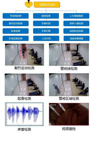 由于公安、司法監(jiān)所關(guān)押人員的特殊性,安全管理工作尤為重要。智能視頻檢索技術(shù)用在監(jiān)獄監(jiān)所中,可實(shí)現(xiàn)警戒線檢測、劇烈運(yùn)動(dòng)檢測、起身檢測、區(qū)域逗留檢測、視頻遮擋檢測。方便第一時(shí)間發(fā)現(xiàn)監(jiān)所內(nèi)人員及設(shè)備異常狀況,及時(shí)做出處理措施,有效遏制所內(nèi)各類突發(fā)事件進(jìn)一步發(fā)展。