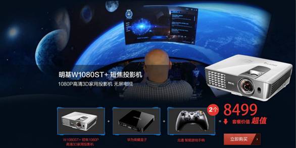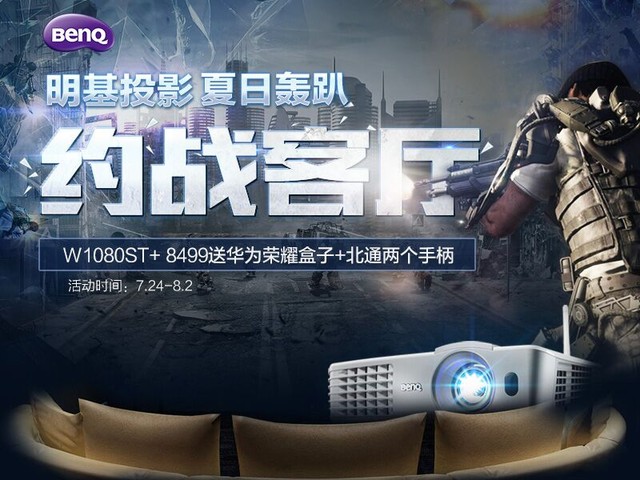 自即日起明基W1080ST+將于京東商城展開限時大促,原價8799特價8499!除直降300以享玩家外,再額外放送兩重好禮,分別為價值298的華為榮耀智能電視機頂盒(真4K超高清/H.265硬解碼/300M全向雙天線設(shè)計/接入廣電總局授權(quán)播控平臺/正版內(nèi)容合法提供),以及同樣價值298的2個北通阿修羅TE智能游戲手柄(鏡面黑酷外觀/2.4G無線連接/支持PC、PS3多種游戲平臺和智能系統(tǒng))。一臺游戲短焦投影機外加智能盒子2個手柄,讓你玩樂之余再享無屏電視和海量電影。