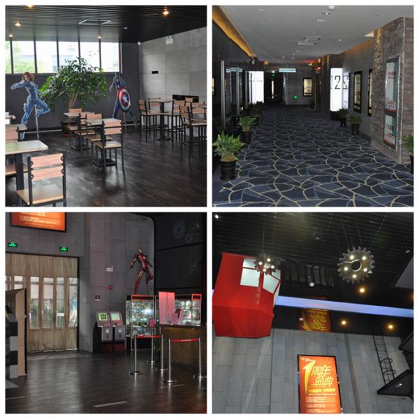 銀興菲林影城的一樓售票大廳內(nèi)隨處可見“復仇者”們的真人大小版畫、二樓精心布置的休息區(qū)清爽明亮,天花板上保留了大量原廠改建時的“齒輪吊燈”和“吊車裝飾”元素,整個影城大廳充斥著電影時尚與工業(yè)滄桑感的混搭設(shè)計,給人第一眼以強烈的視覺感受。