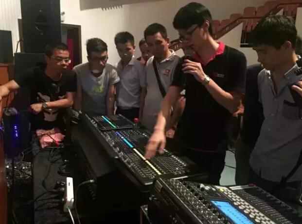 本次培訓班主辦方不僅邀請了業(yè)內(nèi)知名的舞美、燈光、音響老師蒞臨講課,為了協(xié)助舉辦好這次骨干培訓,廣州銳聲攜旗下多個一線品牌如:GLP、LSC、TWAudio、SAL、JBL、SHURE、MIDAS等多款最新數(shù)字化產(chǎn)品,為培訓會提供擴聲支持,并在由銳聲主講的2天的實操培訓課程中,為到場的學員嘉賓進行了詳盡的介紹、試聽與實操培訓。不僅向他們傳達了最新的燈光音響新技術、新產(chǎn)品、新理念,還提高了培訓班學員的實際操作能力。