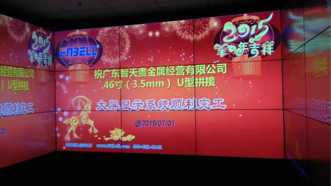 峰寧科技根據(jù)智天貴金屬的設(shè)計(jì)需求,峰寧科技為其演播室設(shè)計(jì)了一組3x7 21片46寸液晶U形拼接墻。