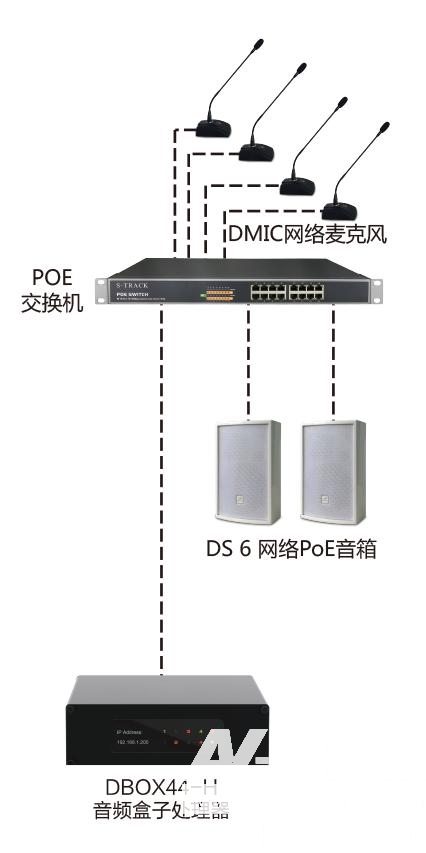 擴聲部分:帶DSP控制軟件的支持Dante的POE音柱和POE音箱。