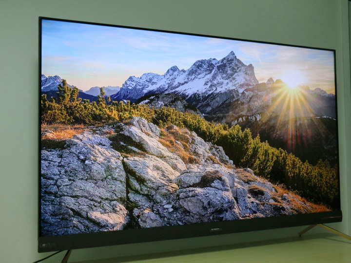 先來看看外觀,創(chuàng)維A10在外觀方面還是非?季康摹U娌捎昧巳厽o邊的設計,配合65英寸的4K分辨率面板有著非常好的視覺沖擊力,視覺焦點可以始終專注在屏幕之上。