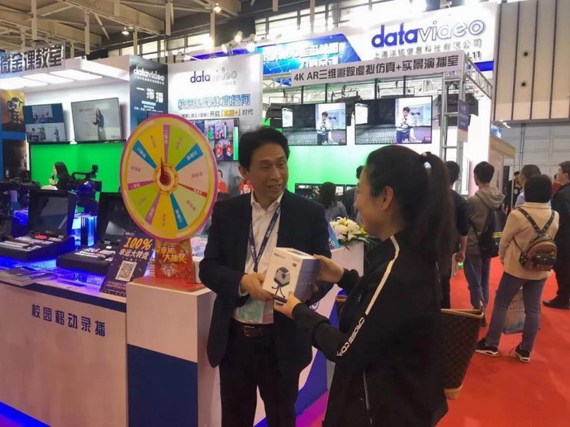 Datavideo展臺(tái)現(xiàn)場(chǎng)抽獎(jiǎng)活動(dòng)頻頻出現(xiàn)大獎(jiǎng),10臺(tái)價(jià)值1499元的4K 360°攝像機(jī)發(fā)放完畢,現(xiàn)場(chǎng)觀眾滿足又興奮:能看到以往沒(méi)見(jiàn)過(guò)的那么多新產(chǎn)品和應(yīng)用思路,還能賺到一臺(tái)高科技攝像機(jī),這次來(lái)參觀真是值!