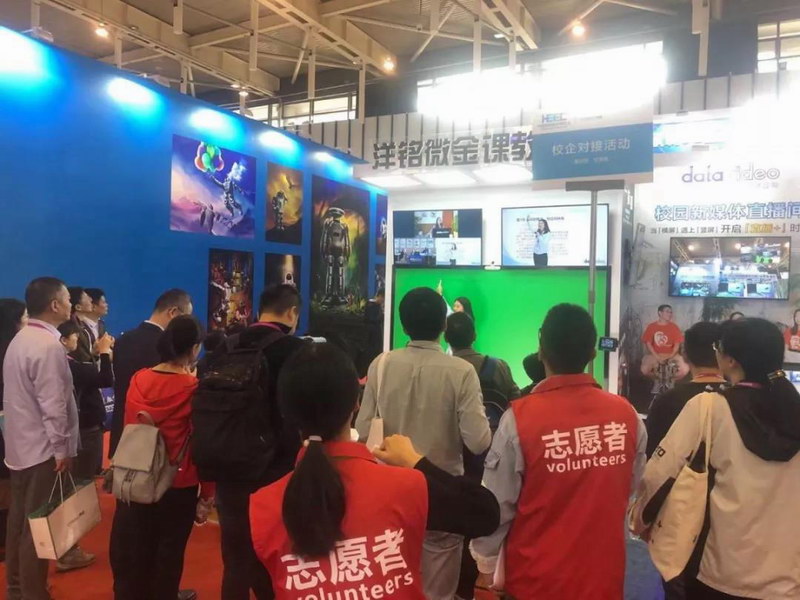 “把江山好處付公來(lái),金陵帝王州”,南京古稱(chēng)金陵,歷史名都之一。在這個(gè)暖暖的秋日,Datavideo洋銘攜帶五大解決方案和眾多產(chǎn)品首次亮相高博會(huì),引起強(qiáng)烈反響,幾次校企對(duì)接人員帶領(lǐng)各地區(qū)的代表和高校老師來(lái)到洋銘展位進(jìn)行參觀,慧聰網(wǎng)也對(duì)洋銘進(jìn)行了專(zhuān)訪。我們也聽(tīng)到了不少現(xiàn)場(chǎng)老師的聲音:“他們這個(gè)微金課操作很方便,效果也很好”,“這家公司牛牛牛,厲害啊”,“這個(gè)摳像效果很不錯(cuò),很真實(shí)”,“他們?cè)O(shè)計(jì)的這個(gè)飛機(jī)真厲害(直升機(jī)3D物件),展示的很棒!”等等,那么讓我們看看洋銘帶來(lái)的都有哪些解決方案?并感受一下現(xiàn)場(chǎng)熱烈的氣氛吧!
