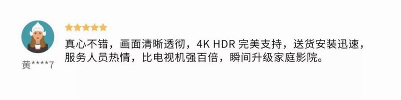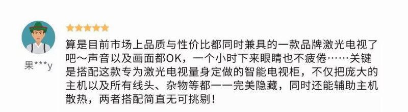 我們在線上商城搜集已購買海信激光電視的用戶評論時,發(fā)現(xiàn)一些很走心的評論。比如,有些用戶很喜歡海信激光電視帶來的4K高清畫質(zhì),搭配環(huán)繞立體音響,秒變K房也是很多用戶喜愛的地方,而海信激光電視,健康護眼的體驗,也得到了不少用戶高度的評價。