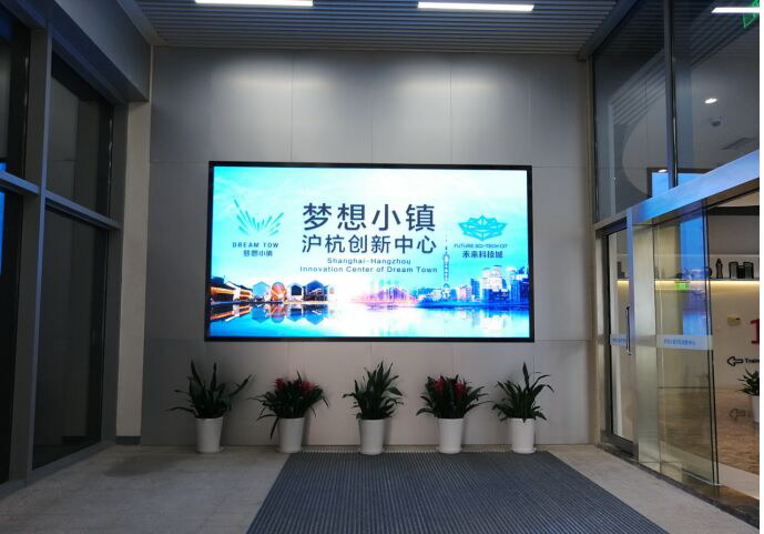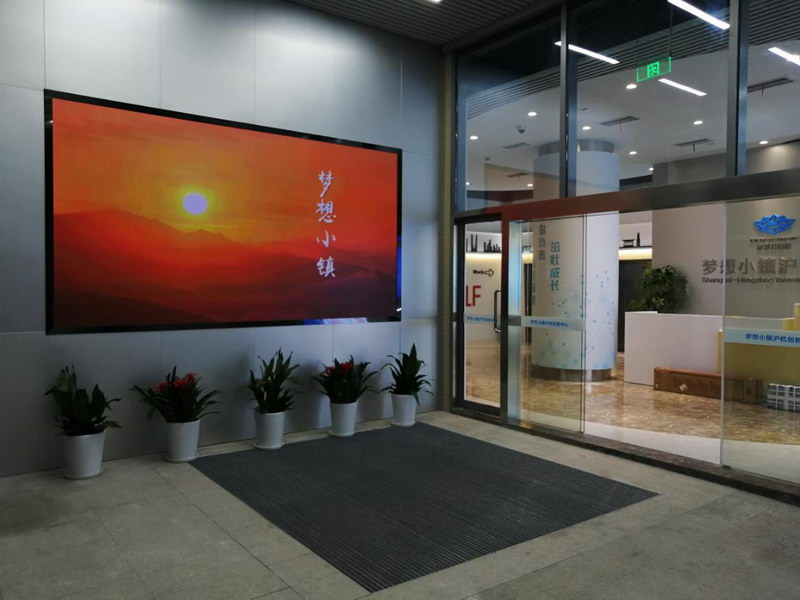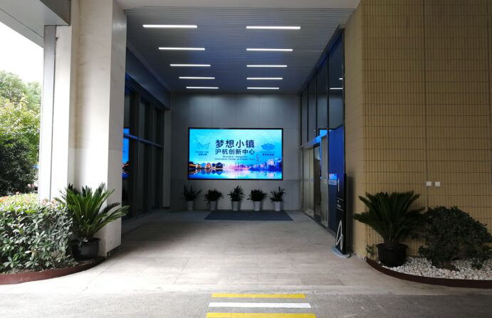 近日,銳麗大屏幕為夢想小鎮(zhèn)滬杭創(chuàng)業(yè)中心打造的P2 LED全彩顯示屏正式亮相。該套屏安裝于創(chuàng)新中心接待大廳門口位置,屏幕點亮瞬間,為迎來送往的門口瞬間提升了N個等級。