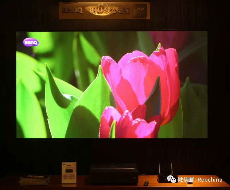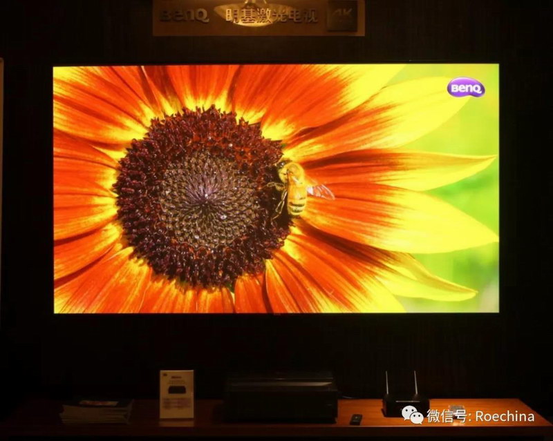 而今天明基激光電視新品i965L搭配高級抗光屏幕,帶來客廳影院,讓現(xiàn)場影音愛好者們覺得很專業(yè)。