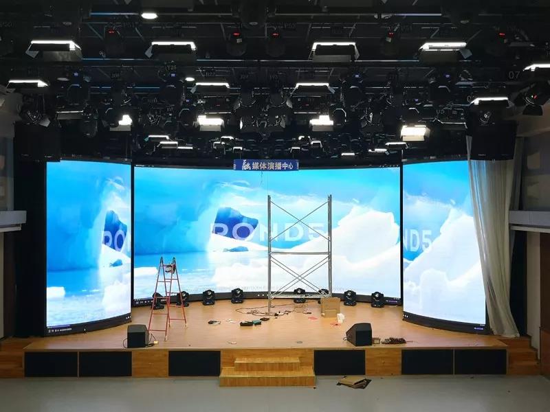 隨著電視技術(shù)和數(shù)字技術(shù)突飛猛進(jìn)的發(fā)展,電視臺演播廳的設(shè)備也隨之不斷升級換代。科技感、時尚感、創(chuàng)新感,都是新媒體大廳帶給我們的感受。在新媒體時代,創(chuàng)新的途徑和手段正在不斷豐富改變?nèi)藗儌鹘y(tǒng)的傳播理念。近日,巴科光電為河北香河廣播電視臺演播廳打造的舞臺P2.5電動開合大屏幕正式投入使用,并成為對外推介香河、展示香河形象的重要窗口。香河縣融媒體中心,是廊坊市首家融入央視融媒體矩陣的縣級融媒。京津冀協(xié)同發(fā)展上升為國家戰(zhàn)略,基于獨特的區(qū)域優(yōu)勢,河北香河于2018年投入2330萬元財政資金建設(shè)縣融媒中心。媒體中心以超前意識,高標(biāo)準(zhǔn)建設(shè)全媒體演播廳,融合廣播電視、IT等技術(shù),能夠滿足時政、專題訪談、綜藝娛樂等
