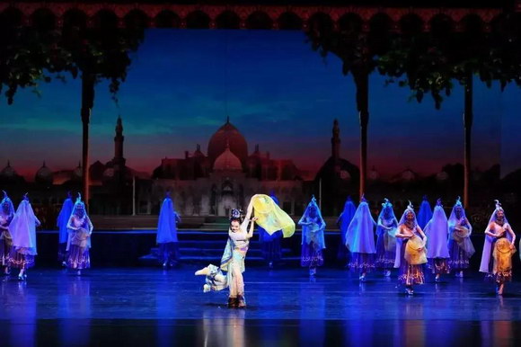 《絲路花雨》以舉世聞名的絲綢之路和敦煌壁畫為素材創(chuàng)作,講述的是古絲綢之路上,淳樸的中國婦女為救助外國商人,其中經(jīng)歷的曲折所引發(fā)的一系列感人故事。40年的匠心獨運,每次演出都深受好評,被譽為“中國民族舞劇的典范!