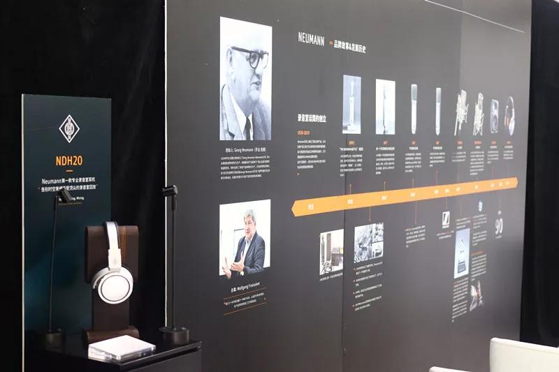 活動現(xiàn)場整體以Neumann品牌配色為主調(diào),以品牌歷史墻、產(chǎn)品海報來營造交流試聽會的氛圍,再加上白色鮮花的點綴,格調(diào)十分的優(yōu)雅。