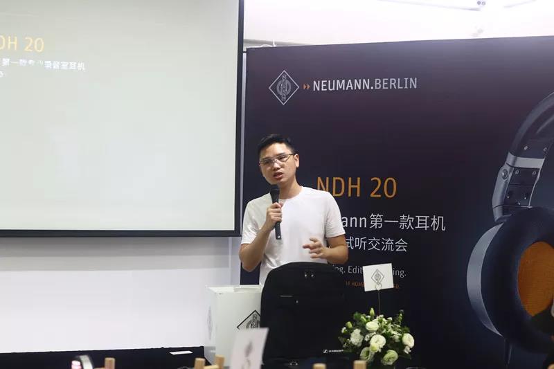 錦藝國際渠道經(jīng)理吳杰春先生,則為大家補充了Neumann NDH20的產(chǎn)品亮點。NHD20采用全新設(shè)計的38mm動圈單元,強力釹磁鐵確保高靈敏度和低失真。NDH 20的Duofol振膜專業(yè)技術(shù)與HD800相同,追求精準(zhǔn)的聲音控制,實現(xiàn)自然通透的真實聲音。