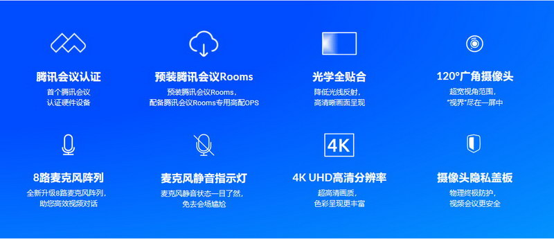 無論領導的私人辦公室、4-6人會議室 (Huddle Room)、開放會議空間 (Huddle Space),都能變成視頻會議與協(xié)作溝通的出色場所。4K分辨率讓畫質(zhì)清晰細膩;內(nèi)置了騰訊會議專用定制電腦,帶來高可靠性與流暢的使用體驗。newline TC系列交互屏配置了4K UHD超高清與超過120% sRGB廣色域帶來至臻畫面,視頻會議更清晰,內(nèi)容呈現(xiàn)更亮麗。8路的麥克風陣列提供6米的清晰拾音距離,并提供自動增益,回聲抑制,降噪,混響抑制,讓參會者的發(fā)言能清晰的傳達到遠端的參會者,保證溝通的效果。120°的廣角4K攝像頭能覆蓋現(xiàn)場的參會者不會被置于鏡頭之外。