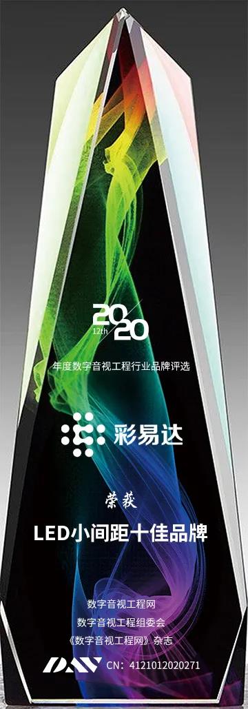 彩易達榮獲“2020年LED小間距十佳品牌”
