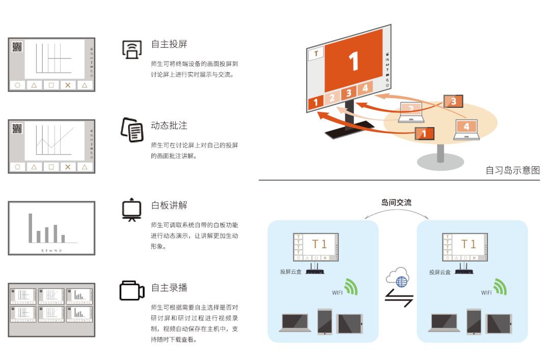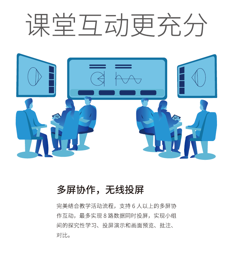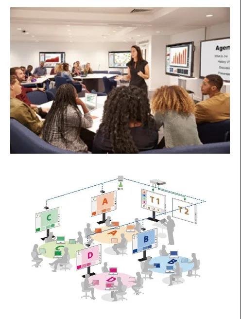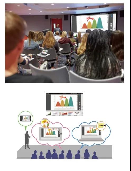 通過共享每個(gè)人的電子設(shè)備,讓團(tuán)隊(duì)、講師和主持人集思廣益,共同合作。