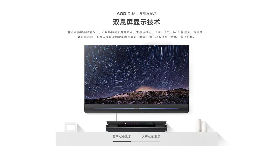 同時,AOD DUAL雙息屏顯示功能可實現(xiàn)語音及視覺的雙維度交互工作,用戶可在電視關機狀態(tài)下語音查詢關于天氣、股票、歌詞等多樣化交互信息,極大地擴展了用戶與電視交互溝通的便利性和實用性。