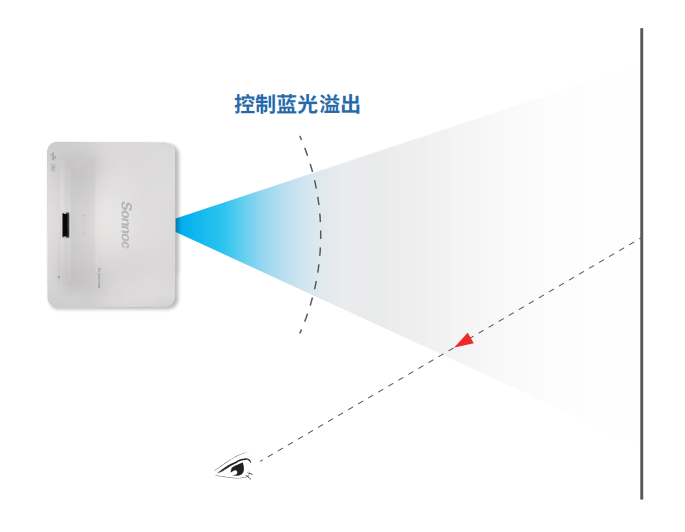 同時(shí)具有專業(yè)“顯示設(shè)備顯示性能和視覺健康”認(rèn)證的投影機(jī),可以有效控制溢出藍(lán)光危害部分(波段:420nm~460nm)。