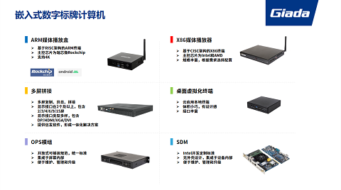 杰和科技專注數(shù)字標(biāo)牌媒體播放器研發(fā)生產(chǎn)20余年,目前已擁有品類齊全、性能豐富的系列媒體播放器整機(jī)及主板產(chǎn)品,其中包括ARM媒體播放盒、X86媒體播放器、多屏拼接控制電腦、客戶機(jī)、OPS模組和SDM系列等。