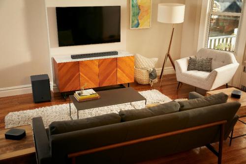 JBL BAR9.1 TWS憑借820W的峰值輸出功率,讓聲音表現(xiàn)更加強(qiáng)勁、澎湃,同時(shí)配備10”無(wú)線低音揚(yáng)聲器帶來(lái)精準(zhǔn)且有力量感的音效;JBL BAR9.1 TWS包含Wi-Fi連接且兼容AirPlay2及Qplay播放,同時(shí)也可以通過(guò)手機(jī)及平板的藍(lán)牙功能實(shí)現(xiàn)無(wú)線音樂(lè)串流,隨時(shí)連接享受音樂(lè)時(shí)光。