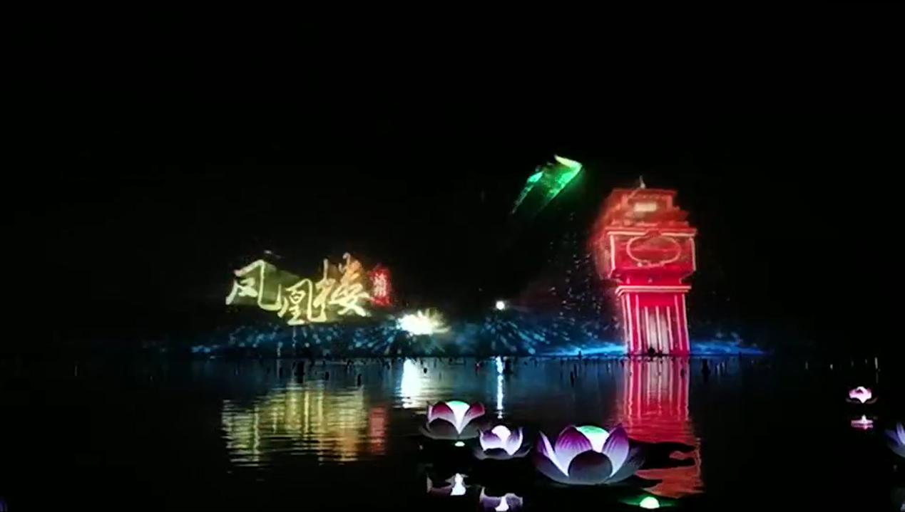 開會之余,客戶一行來到依山傍水的蓮花湖風(fēng)景區(qū)觀賞了5D全息水舞秀。表演以湖中噴泉噴射形成的水幕作為載體,采用2臺NEC PH3501QL+ 4萬流明雙色激光工程投影機打造出50*15米高超大水上銀幕,隨著音樂與燈光的變化起起伏伏。PH3501QL+采用紅藍(lán)雙色激光光源技術(shù),將圖騰、蓮花、閃電等場景元素的絢爛動態(tài)影像投射到水幕上,在光怪陸離的全息光影中把蓮花湖幻化成了“人間仙境”。