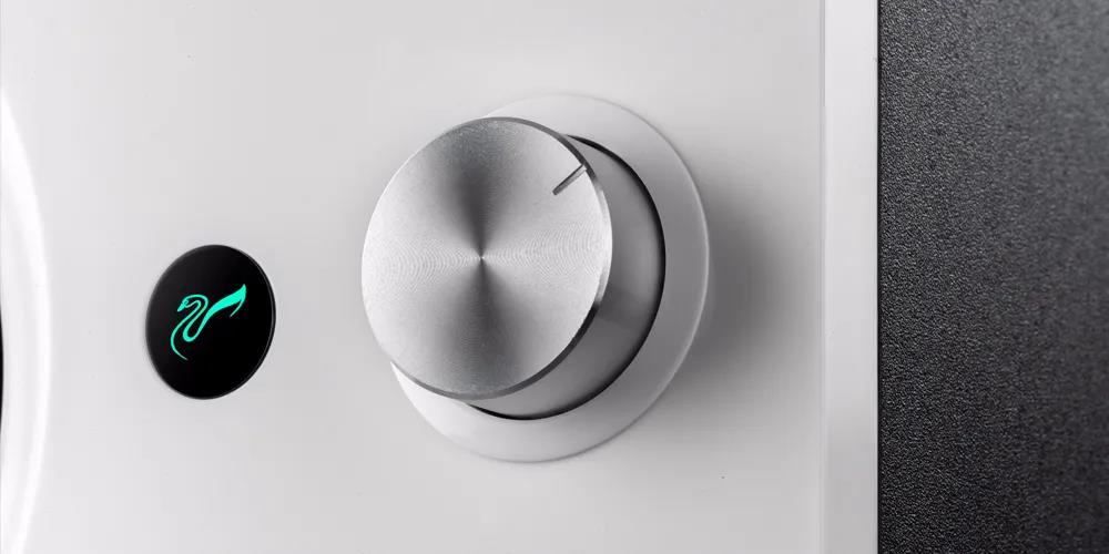 超低音前方還配備了HiVi-Swans天鵝logo的遙控器接收窗口,用戶通過多功能遙控器,可進行輸入模式、音量、指示燈開關(guān)等功能的便捷遠程操控,接收窗口背光顏色/狀態(tài)會根據(jù)不同模式進行切換,顯示直觀,一目了然。