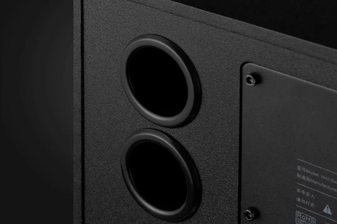 后置雙倒相管設(shè)計,大大保證倒相管內(nèi)部空氣在諧振頻率點擁有低的風噪聲,低頻更真實震撼。