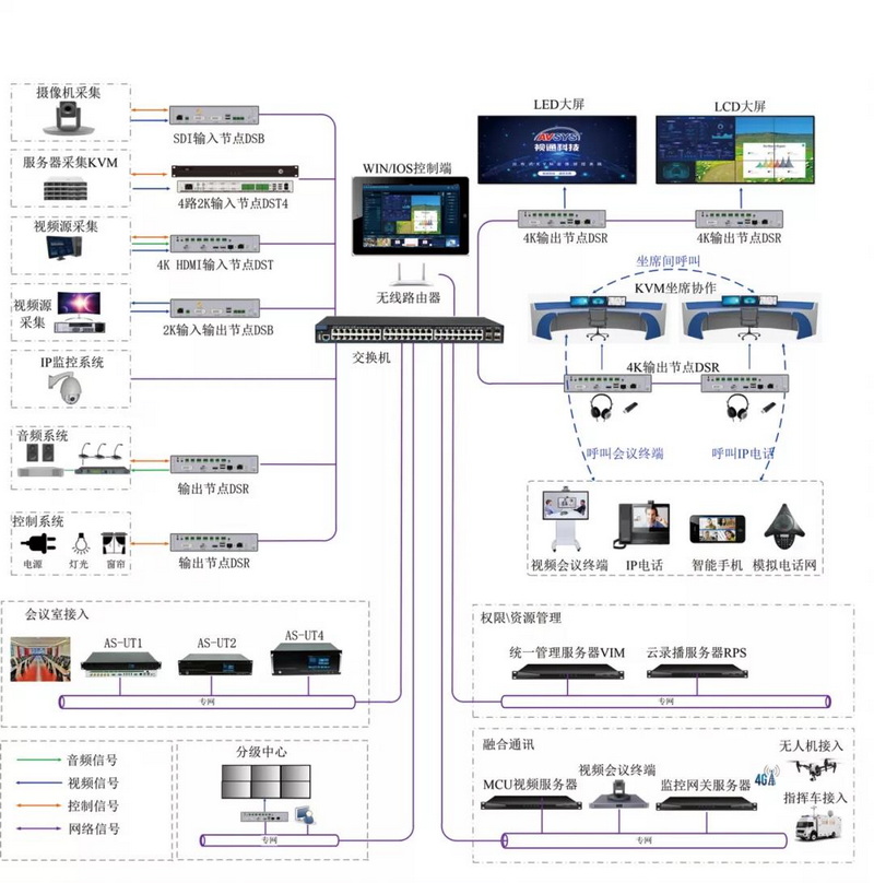 視通科技經(jīng)過(guò)多年來(lái)對(duì)技術(shù)的深入研究和對(duì)用戶使用習(xí)慣的積累,推出了AS-ADS 4K分布式KVM坐席拼控解決方案,本系統(tǒng)是一套技術(shù)先進(jìn)、功能完善、性能穩(wěn)定、安全可靠、操作方便、擴(kuò)展方便的管理協(xié)作系統(tǒng)。本系統(tǒng)基于IP無(wú)中心化設(shè)計(jì),嵌入式架構(gòu),為用戶解決音頻處理、視頻拼接處理、視頻會(huì)議處理、網(wǎng)絡(luò)傳輸、環(huán)境監(jiān)控、KVM協(xié)作、可視化控制等多種功能于一體的現(xiàn)代化、網(wǎng)絡(luò)化、互聯(lián)互通智能化管理平臺(tái)。