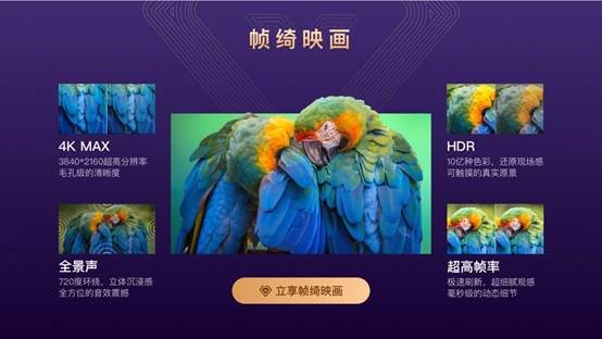 “幀綺映畫(huà)”代表著4K MAX、HDR、全景聲、超高幀率這些曾經(jīng)遙遠(yuǎn)的技術(shù)名詞已經(jīng)變成觸手可及的體驗(yàn),用戶感受到的是觀看的畫(huà)面色彩更加細(xì)膩了,細(xì)節(jié)更加生動(dòng)了,一些運(yùn)動(dòng)場(chǎng)面更加順滑了,以及電視傳出的聲音就環(huán)繞在你周圍,仿佛置身其中。