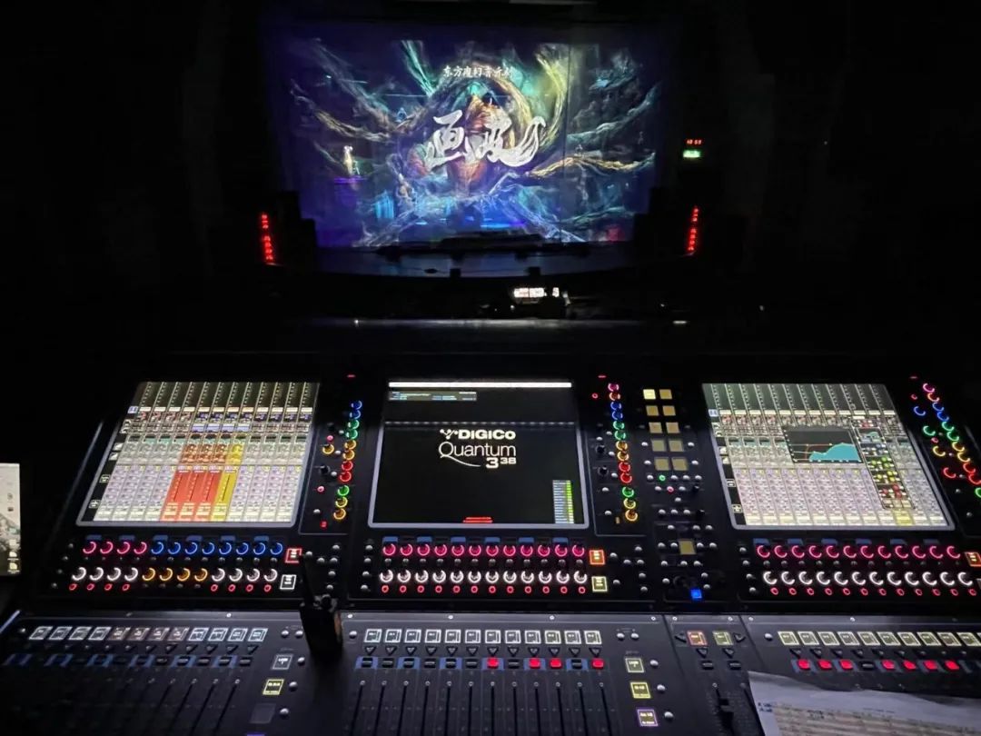 調(diào)音臺使用一張Quantum 338,這款調(diào)音臺有著更耐看的視覺設(shè)計,科技感爆棚。并配套各種人性化的應(yīng)用特性,帶有38個物理推子和3個17英寸LCD高分辨率觸摸屏,可處理128個輸入通道。不僅如此,這款調(diào)音臺更是集齊了SD系列調(diào)音臺所有優(yōu)勢,并在此基礎(chǔ)上進一步增加了Quantum引擎特有的Spice Rack(調(diào)料機架)和Nodal Processing(節(jié)點處理),全新的處理器也讓調(diào)音臺系統(tǒng)反應(yīng)速度更快,操作起來更得心應(yīng)手。接口箱使用的是D2-Rack。