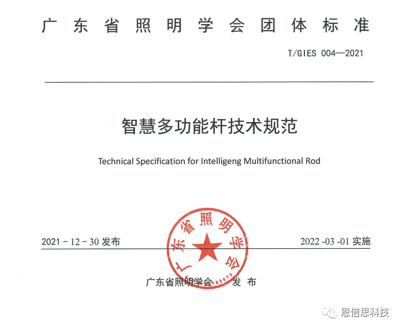 日前,由恩倍思科技參編制定的《智慧多功能桿技術(shù)規(guī)范》團(tuán)體標(biāo)準(zhǔn)正式發(fā)布,該規(guī)范將于2022年3月1日實(shí)施!吨腔鄱喙δ軛U技術(shù)規(guī)范》標(biāo)準(zhǔn)針對(duì)多功能燈桿的結(jié)構(gòu)功能、性能指標(biāo)、施工驗(yàn)收、運(yùn)行維護(hù)與運(yùn)營(yíng)管理等方面制訂詳細(xì)的規(guī)范,對(duì)于智慧多功能桿的規(guī)范建設(shè)有著重要意義。