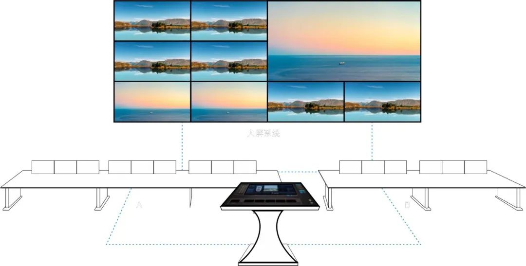 在布局完成后,拼接屏迅速切換為新的布局,也可將預(yù)布局保存為場(chǎng)景,待需要時(shí)調(diào)用,提高了應(yīng)急情況下慧醫(yī)保信息中心各部門協(xié)同、集群指揮、聯(lián)合遠(yuǎn)程視頻會(huì)商、調(diào)度信息管理的能力。