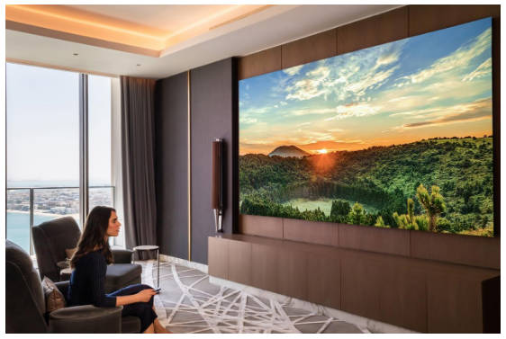 據(jù)了解,酒店最豪華的貴賓套房——皇家大廈內(nèi)安裝了146英寸三星The Wall商用顯示屏,為VIP客人提供獨(dú)一無(wú)二的沉浸式觀看體驗(yàn)。三星The Wall產(chǎn)品使用了三星在MICRO LED領(lǐng)域的獨(dú)家領(lǐng)先顯示技術(shù),MICRO AI處理器提供多元智能AI影像增強(qiáng)功能,呈現(xiàn)高端畫(huà)質(zhì)效果。超微間距技術(shù)和超低反射膜輔以20位處理技術(shù)為賓客提供了仿若置身于真實(shí)生活場(chǎng)景的震撼體驗(yàn)。其動(dòng)態(tài)效果同樣卓越,通過(guò)優(yōu)化供電效率與視頻信號(hào),保證畫(huà)面平滑順暢。此外,三星The Wall 商用顯示屏采用無(wú)線纜直插式安裝結(jié)構(gòu),安裝便捷,維護(hù)簡(jiǎn)單,在各種環(huán)境下均能夠良好適應(yīng)。在其它客房則安裝了大型超高清酒店顯示屏,確保每位客人都能沉浸在個(gè)性化的影音享受中。