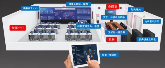 在指揮大廳配備1套可視化坐席調(diào)度管理平臺(tái),將廳內(nèi)聲光電視訊等設(shè)備進(jìn)行鏈接,搭配科大訊飛語(yǔ)音識(shí)別引擎實(shí)現(xiàn)語(yǔ)音控制空調(diào)溫度、音響音量、窗簾開閉、燈光開關(guān)、攝像頭動(dòng)作、中控場(chǎng)景切換等功能,讓指揮中心更加快速進(jìn)入備戰(zhàn)/作戰(zhàn)狀態(tài)。對(duì)接外部監(jiān)控、門禁、移動(dòng)單兵等系統(tǒng)平臺(tái),實(shí)現(xiàn)內(nèi)外部互聯(lián)互通,進(jìn)行集中調(diào)度、聯(lián)合指揮、統(tǒng)一管控,從而幫助用戶應(yīng)對(duì)各種場(chǎng)景需求,快速進(jìn)行智能化場(chǎng)景應(yīng)用調(diào)度,通過可視化交互界面,讓使用者一鍵式即可完成場(chǎng)景布局和切換。