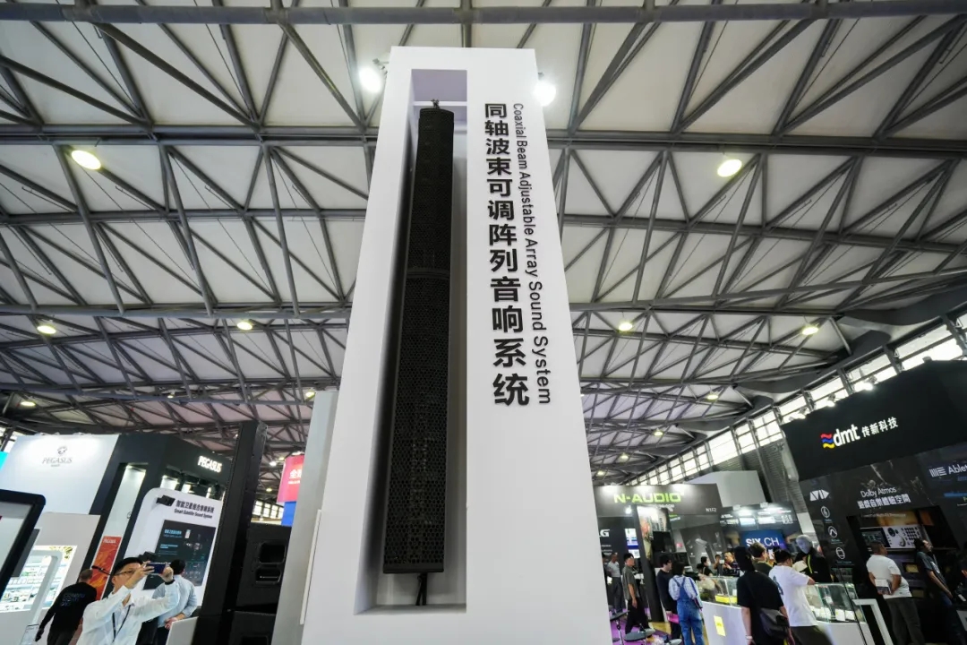 此展區(qū)展示創(chuàng)新的同軸波束可調(diào)陣列音響系統(tǒng),具備指向可調(diào)、音視頻一體化、免嘯叫技術(shù)等特色,一套音響系統(tǒng)可一鍵切換實(shí)現(xiàn)會議、演出、培訓(xùn)等多種場景音響效果。