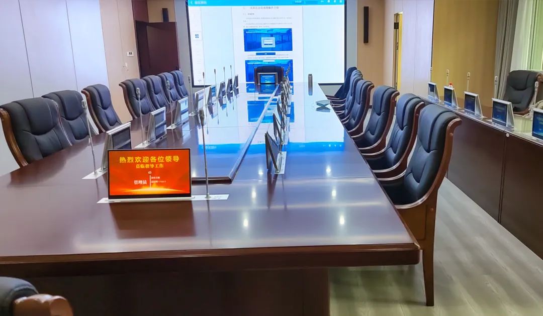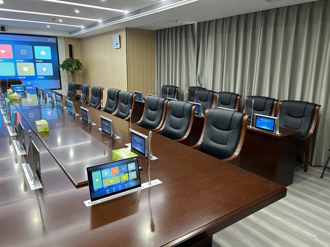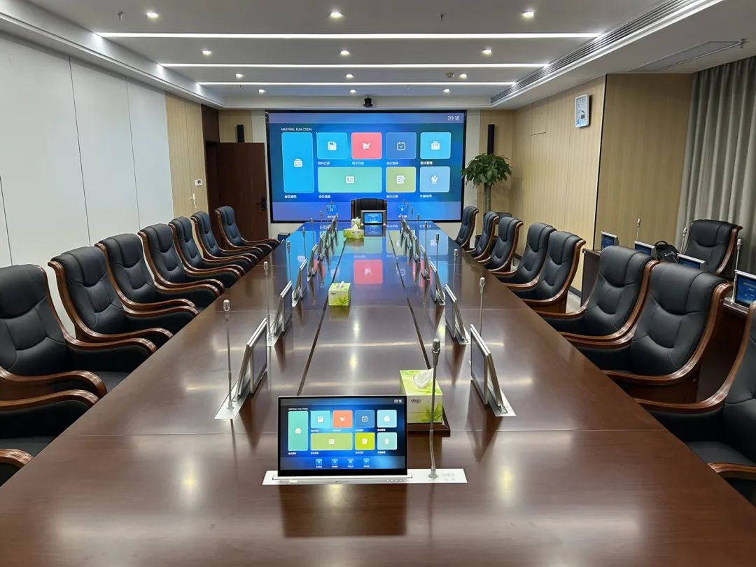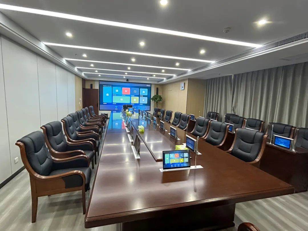 值得一提的是,該系統(tǒng)配備的無(wú)紙化升降終端設(shè)計(jì)精巧,具備顯示屏和話(huà)筒的一鍵升降功能,充分滿(mǎn)足了會(huì)議中信息展示和溝通的多重需求。一鍵升降功能使得顯示屏和話(huà)筒可以根據(jù)需要迅速調(diào)整至合適的高度和角度,既保證了參會(huì)人員能夠清晰地看到會(huì)議內(nèi)容,又避免了在不使用時(shí)占用會(huì)議桌面的空間,實(shí)現(xiàn)了空間的合理利用。